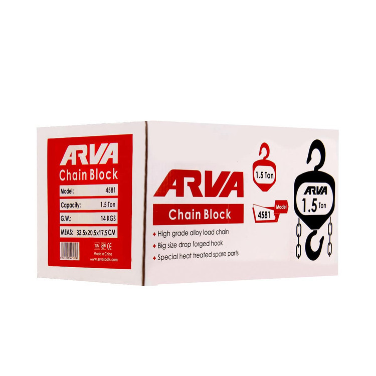 جرثقیل مدل ۴۵۸۱ آروا ۱.۵ تن است یک ابزار مناسب برای بالا بردن عمودی بار و اجسام گوناگون در رنج توان دستگاه می باشد. از ویژگی های بارز این مدل جرثقیل دستی می توان به عملکرد ایمن و مطمئن، کارایی بالا، اعمال نیروی کم، کاربرد آسان اشاره کرد. مکانیزم کاری جرثقیل دستی ۴۵۸۱ آروا بسیار ساده است و همانند یک اهرم است که با اعمال نیروی کم توسط چرخ دنده ها و گیربکس می توانید یک جسم سنگین را بلند کنید.