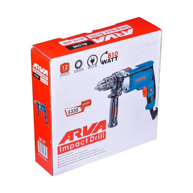 دریل چکشی مدل ۵۳۳۵ آروا، ابزاری قدرتمند و باکیفیت و برای انجام کارهای نجاری و آهنگری، صنعتی و حتی مصرف خانگی مناسب است. این دریل با توان ۸۱۰ وات، سرعت گردش در حالت بی باری ۰ تا ۳۳۰۰ دور بر دقیقه، انتخابی ایده آل برای انجام طیف وسیعی از کارهای سوراخکاری در حالت عادی و چکشی است.