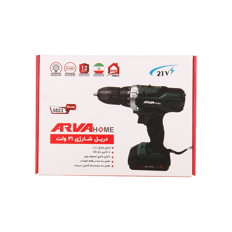 دریل های شارژی در قدرت ها و ولتاژ های متنوعی طراحی می شوند که با توجه به قدرتشان مورد استفاده قرار می گیرند. دریل شارژی خانگی آروا ۵۸۲۳ دارای ولتاژ ۲۱ ولت و حداکثر گشتاور ۲۳ نیوتن متر است. سه نظام این دریل شارژی خانگی اتومات بوده و سایز آن ۱۰ میلی متر می باشد. این دستگاه مجهز به کلید های گوناگون است و با آن علاوه بر سوراخکاری، باز و بستن پیچ نیز می توانید انجام دهید. دریل پیچ گوشتی شارژی ۵۸۲۳ دارای چراغ LED برای کار در محیط های کم نور است و همچنین بند مچی نیز دارد.