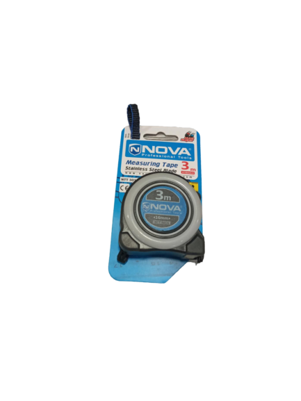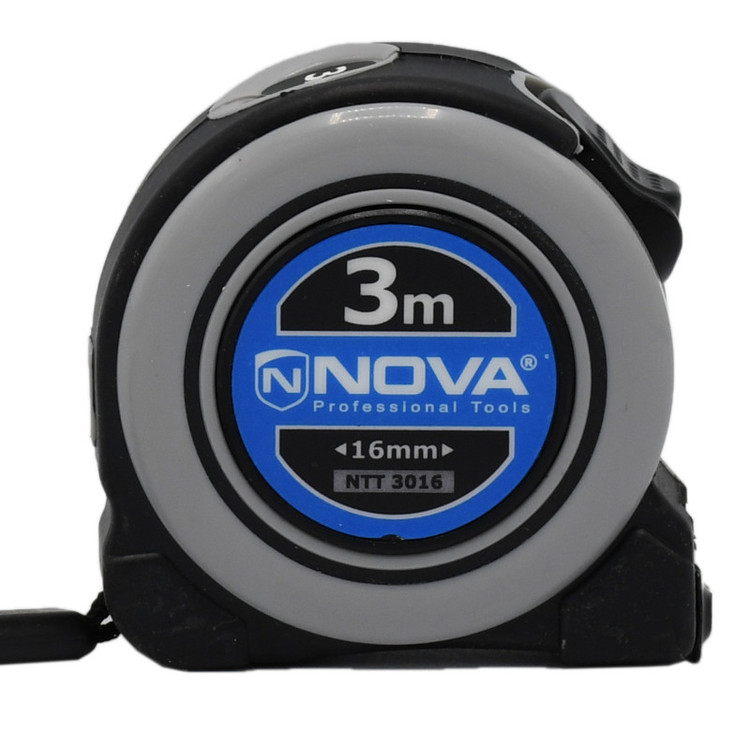 متر 3 متری نوا، مدل NTT-3016، با ضخامت نوار 16 میلی متر، دارای یک نوک فلزی از جنس فولاد زنگنزن و دارای دو عدد آهنربای قوی است. برای تقویت خواص متر و بالا بردن دوام و کیفیت آن، یک لایهی فلزی اضافه، به سر تیغهی آن پین شده است که استقامت آن توسط ابزارلاین تست شده است. سری فلزی را میتوان با جهت اندازه گیری کار از داخل یا بیرون کار، به طور اتوماتیک تنظیم کرد.
