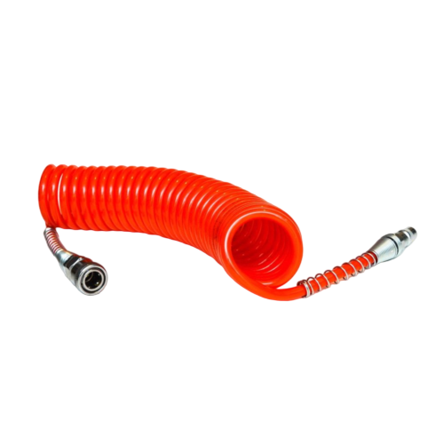 شلنگ فنری یک نوع رابط بین منبع باد که غالبا کمپرسور است و ابزار بادی می باشد و این دو را به هم متصل می کند .شلنگ فنری در کارگاه های صنایع چوب ، مکانیکی ها در خطوط مونتاژ کارخانجات و هر جایی که یک ابزار بادی به کار می رود،یافت می شود جنس این شلنگ از مواد اولیه پلی یورتان (PU) است .طول این شلنگ فنری 10 متر می باشد. قطر داخلی این شلنگ فنری 5 میلی متر و قطر خارجی آن 8 میلیمتر است. حداکثر فشار قابل تحمل این شلنگ 24 بار است . به علت استفاده 100 درصدی از مواد پلی یورتان ، این شلنگ فنری به هیچ عنوان خاصیت فنری خود را از دست نمیدهد و از حالت فنری بودن خود خارج نمیشود . در انتهای این شلنگ یه عدد کوپلینگ اتصال با کیفیت با مارک تانوس و در سر دیگر این شلنگ یک عدد دنباله اتصال نصب شده تا براحتی بتوان از این ابزار استفاده نمود . همچنین در قسمت اتصال این کوپلینگها و دنبالهها نیر از فنر مقاوم و قابل انعطاف استفاده شده تا از هرگونه آسیب در این قسمت جلوگیری شود و استقامت شلنگ افزایش یابد .